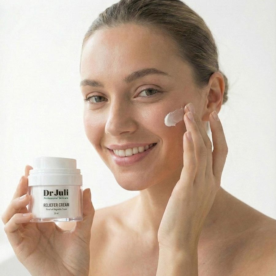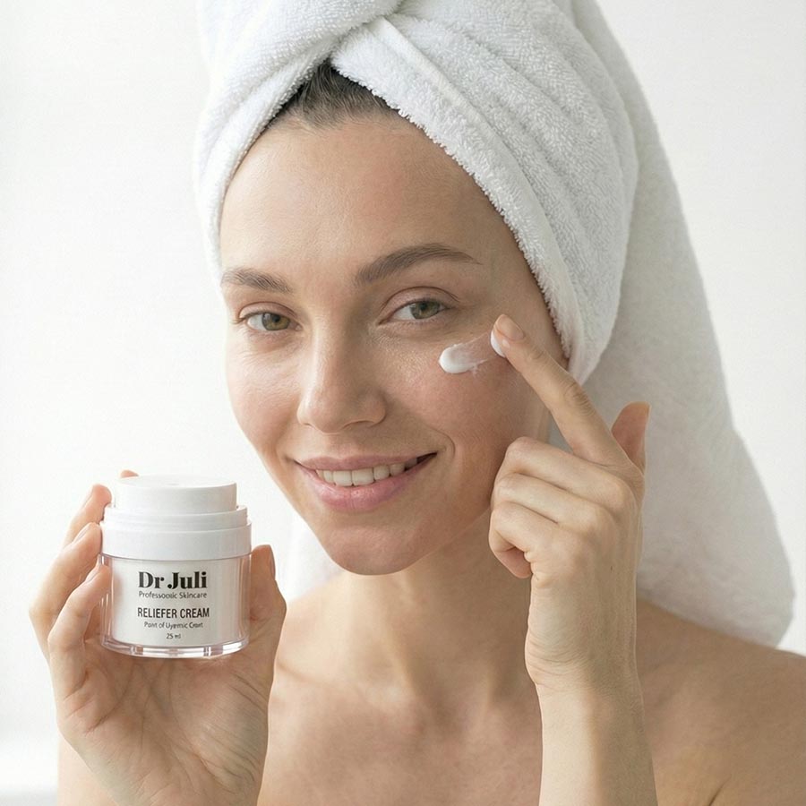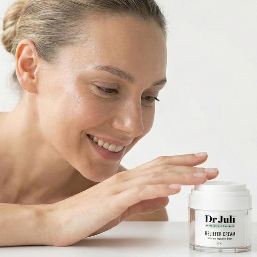מוצר הדגל הייחודי מבית ד"ר ג'ולי פורמולת הרגעה ולחות טיפולית עם חומרים מרגיעים (פנתנול, ביסבולול), אנטיאוקסידנטים (ויטמין E, וחלבון חיטה) ושמנים טבעיים (אלוורה, חמאת שיאה, שמן שקדים).